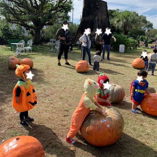 今年はあいにく台風の影響で20個くらいしかありませんでしたが、子どもたちは自由に走り回ったり中には滑り台などもあり植物館の中も外も満喫